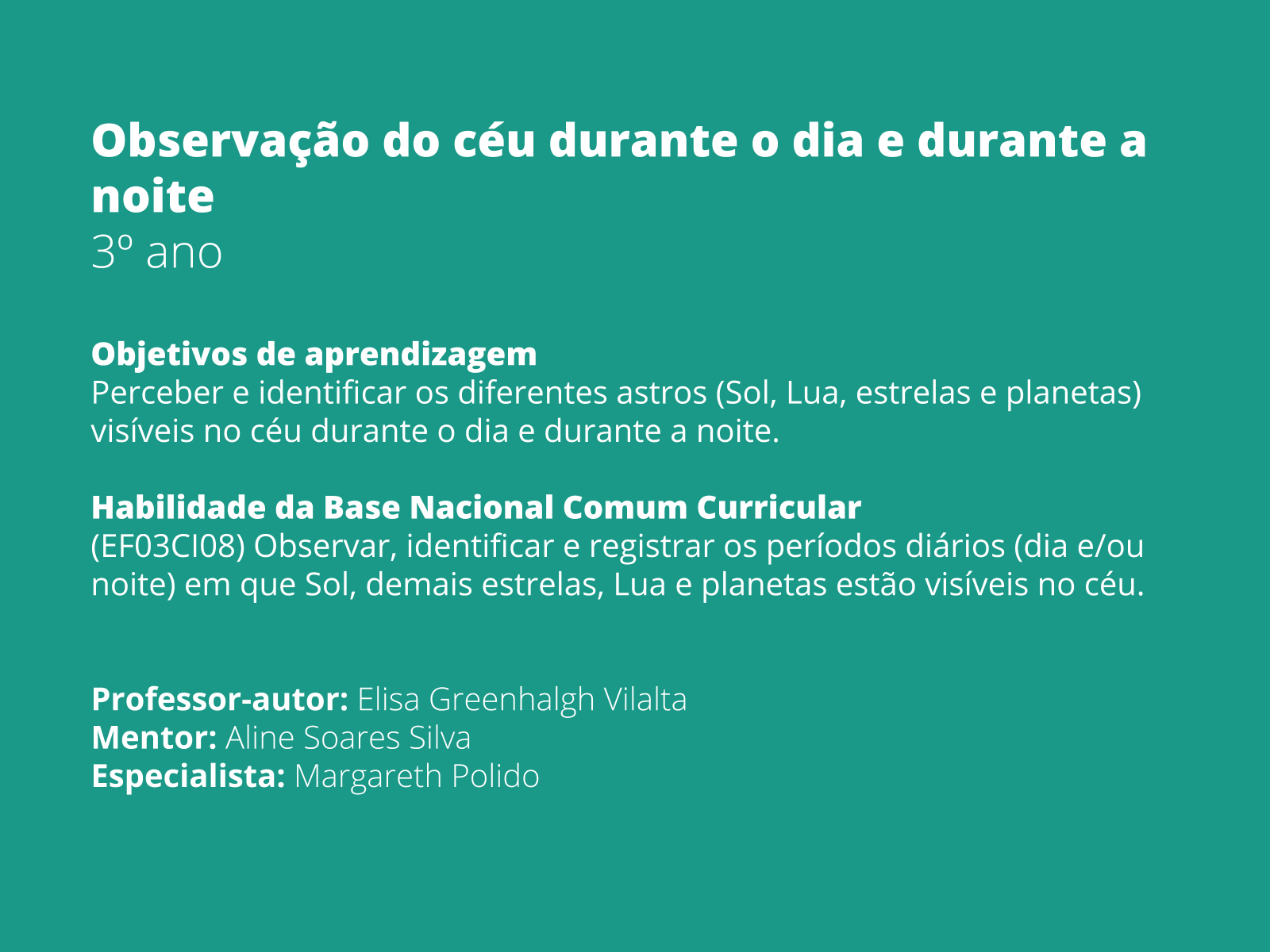 Plano de Aula - 3º ano - Ciências - Observação do céu durante o dia e durante a noite